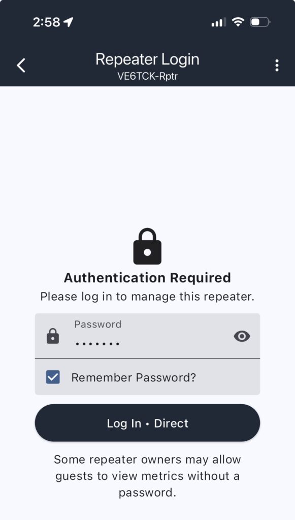 Use your companion app to log into the repeater you wish to upgrade. You must be logged in as the admin.