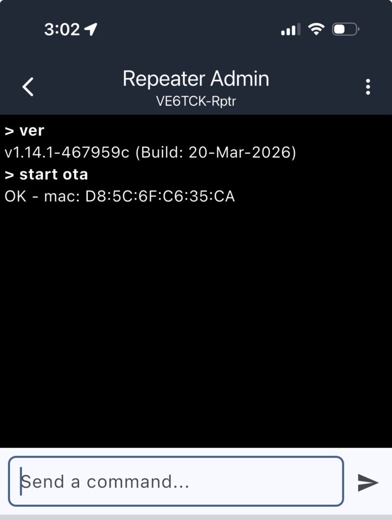 OK You have built a repeater with a RAK4631 and mounted it high up on a tower (because everyone knows, hight wins). Everything is looking good right? Then along comes a MeshCore firmware update and the last thing you want to do is climb back up that town just to upgrade it. Well don’t fear, OTA (Over-The-Air) upgrades are here to help.