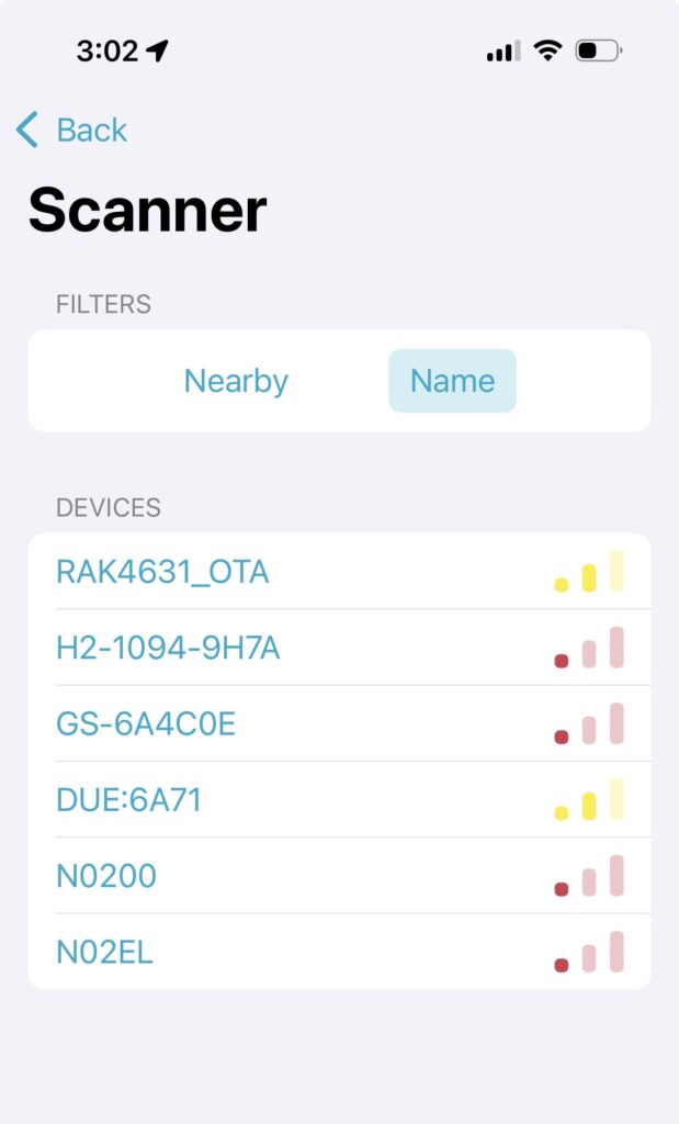 Next Click on the Device button and select your repeater. If you are running the safe DFU Bootloader then your device will show up as RAK4631_OTA. If you don’t have the DFU Bootloader installed, then you will have to determine what one is your repeater (if more than one) and make sure it is the one your select.
